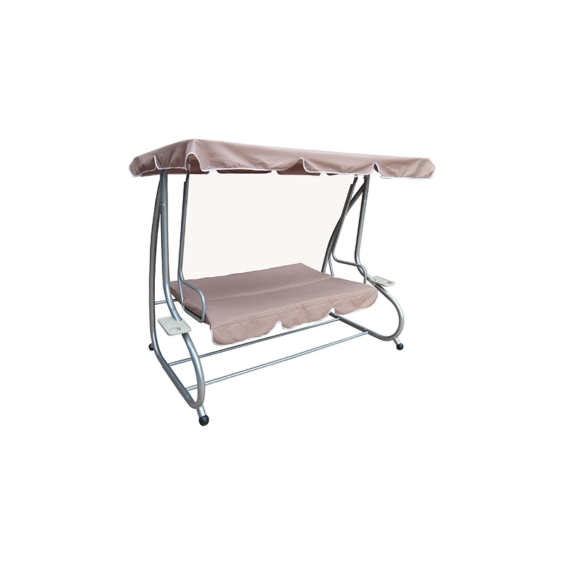 Dondolo reclinabile, in tubo d'acciaio verniciato. Copertura superiore in poliestere da 180 gr/mq. Seduta in poliestere da 160 gr/mq. Colore beige. Dimensioni 230x120x170 cm.