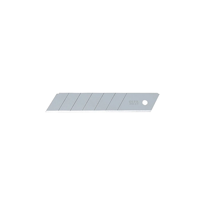 Lama per cutter da 25 mm. Spessore lama 0,70 mm. Lunghezza 126 mm. Modello = art. fornitore/blister o confezione da pz