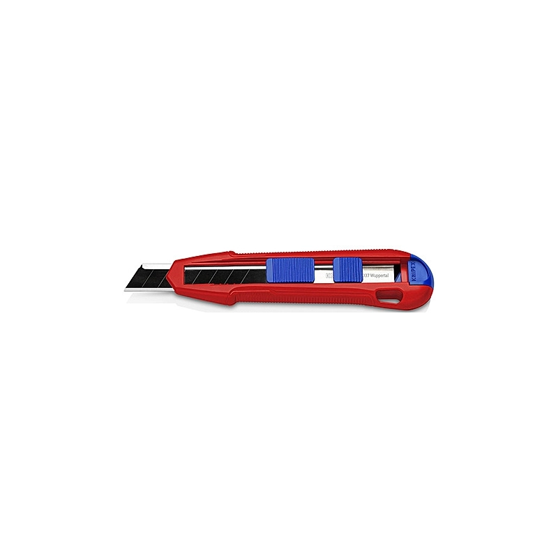 Cutter universale in magnesio estremamente robusto e leggero. Innovativa guida regolabile di stabilizzazione della lama. Lama da 18 mm autobloccante. Serbatoio con 2 lame di ricambio. Impugnatura ergonomica antiscivolo. Lunghezza 165 mm. Peso 111 gr.