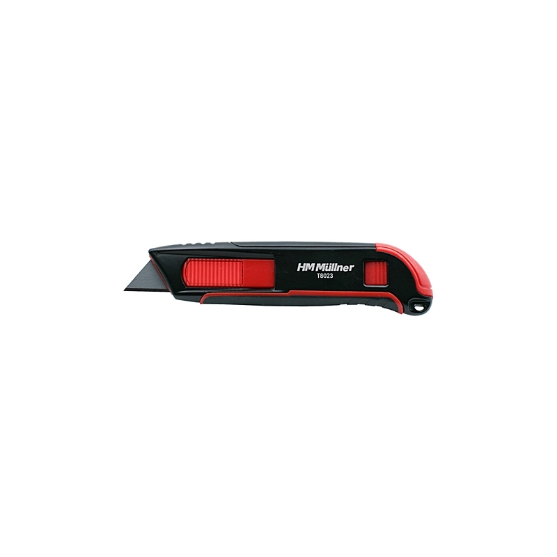 Cutter in alluminio antinfortunistico. Movimentazione sicura grazie al sistema automatico azionabile sia con mano destra che con mano sinistra. Incluse 3 lame trapezoidali da 60 mm. Lama di ricambio adatta TGL65