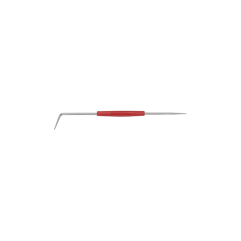 Punte a tracciare ad angolo in speciale acciaio cromo vanadio, cromate ed impugnatura in plastica. Dimensione mm 220.