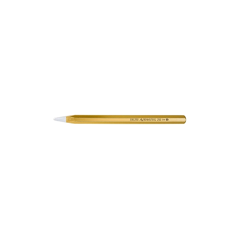 Punta in acciaio altolegato per utensili. Consente ripetute riaffilature della punta. Testa con speciale trattamento che evita la scheggiatura e la deformazione del materiale. Verniciato a immersione. Colore oro. Diametro 16 mm. Made in Germany. Modello = lunghezza mm
