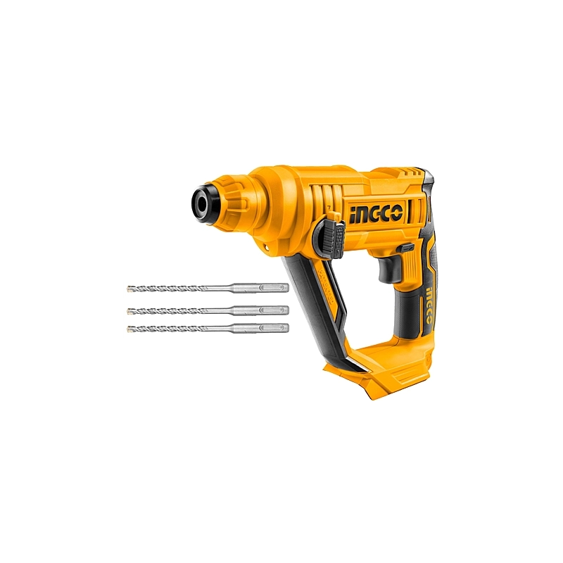 20 V. Motore BRUSHLESS senza spazzole. 1,5 J. 0-900 giri/min. Perforazione max 16 mm su calcestruzzo. Luce led integrata. Con 3 punte SDS-plus. Fornito senza batteria.