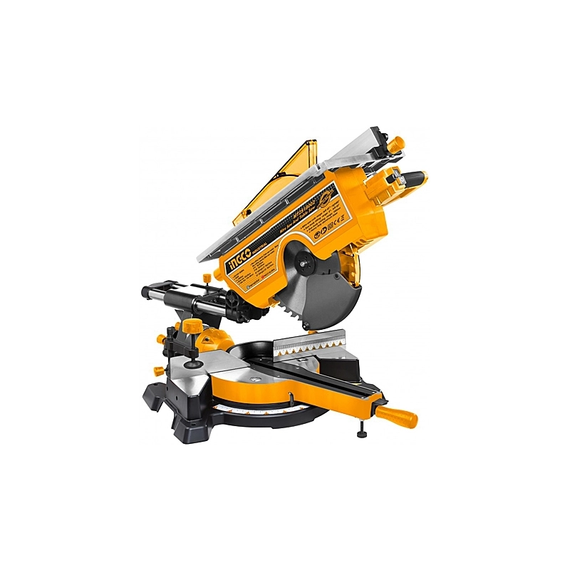 Potenza 1800 W. Velocita' a vuoto 3600 giri/min. Diametro lama mm 305x30. Angolo di taglio a troncare 60 gradi dx, 45 gradi sx. Piano superiore a scorrimento radiale.