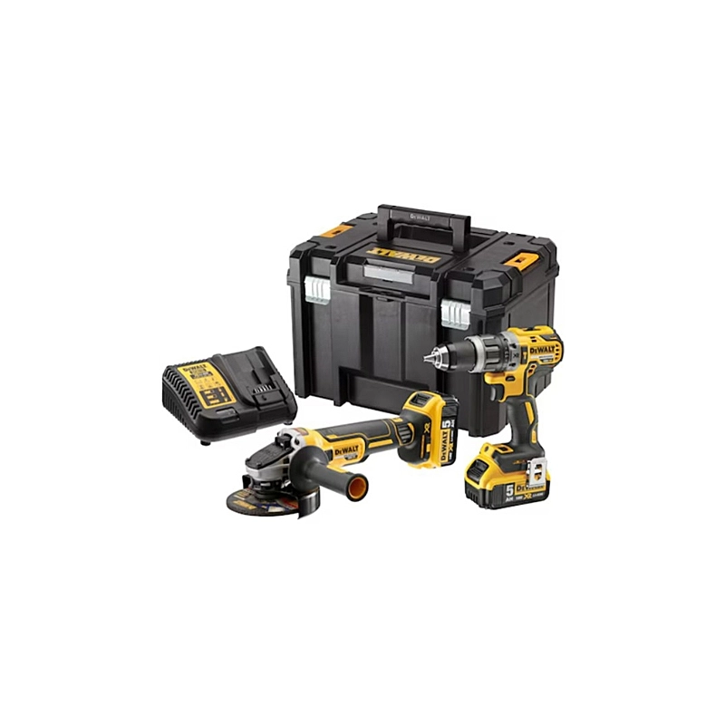 Caratteristiche trapano DCD796: motore BRUSHLESS 18 V. Mandrino autoserrante mm 13. Con percussione. 70 Nm, 2 velocita' meccaniche. Caratteristiche smerigliatrice DCG405: motore BRUSHLESS 18 V, diamentro disco 125 mm e velocita' a vuoto 9000 giri/min. Fornito con 2 batterie al Litio da 5 Ah, 1 caricabatterie e 1 valigetta T-STAK VI.