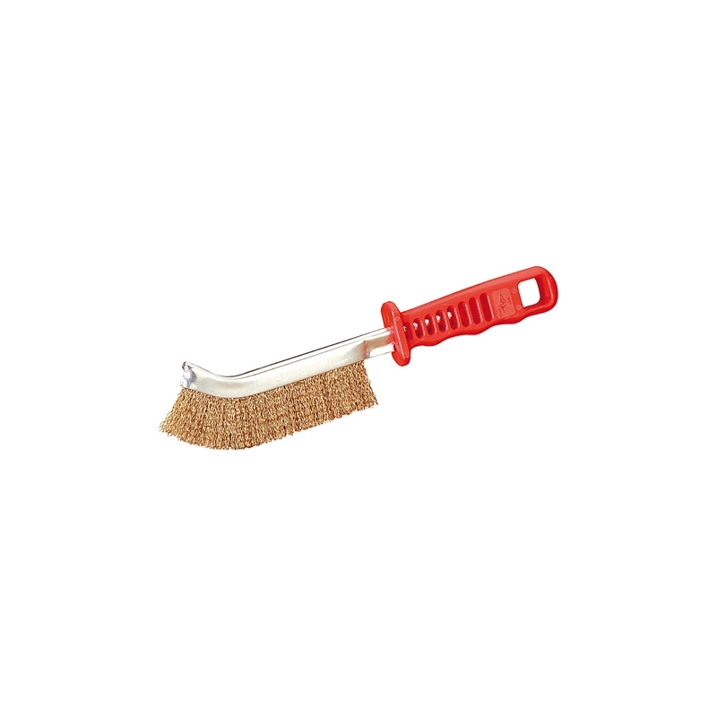 Spazzola pesante con fili di alta qualita' in acciaio ottonato. Manico in plastica.