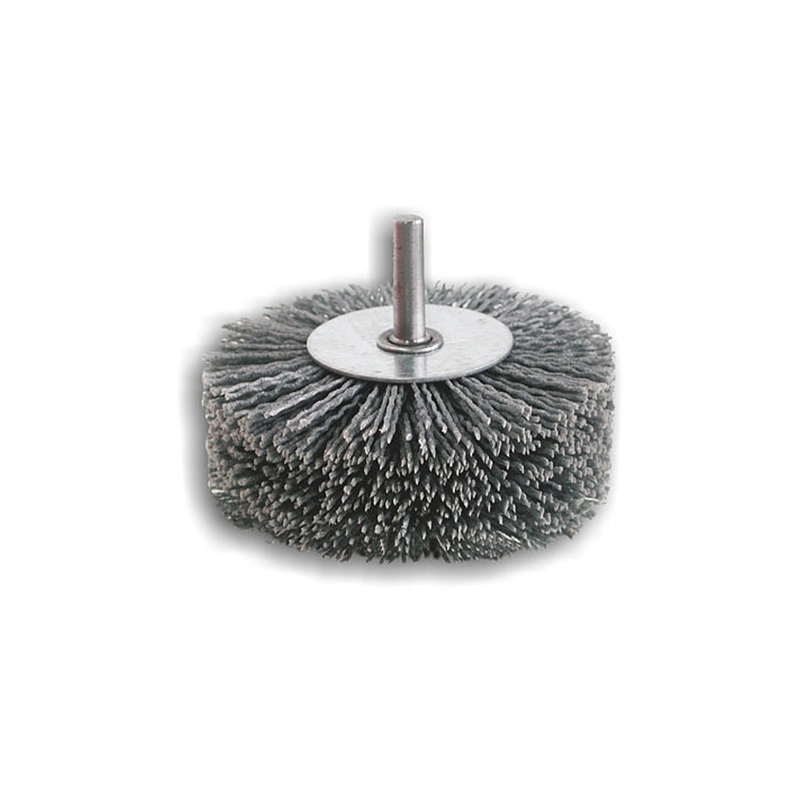 Spazzola circolare in nylon abrasivo per la spazzolatura del legno. Gambo da 8x30 mm. Dimensioni 100x40 mm. Rotazione max 6000 giri/min.