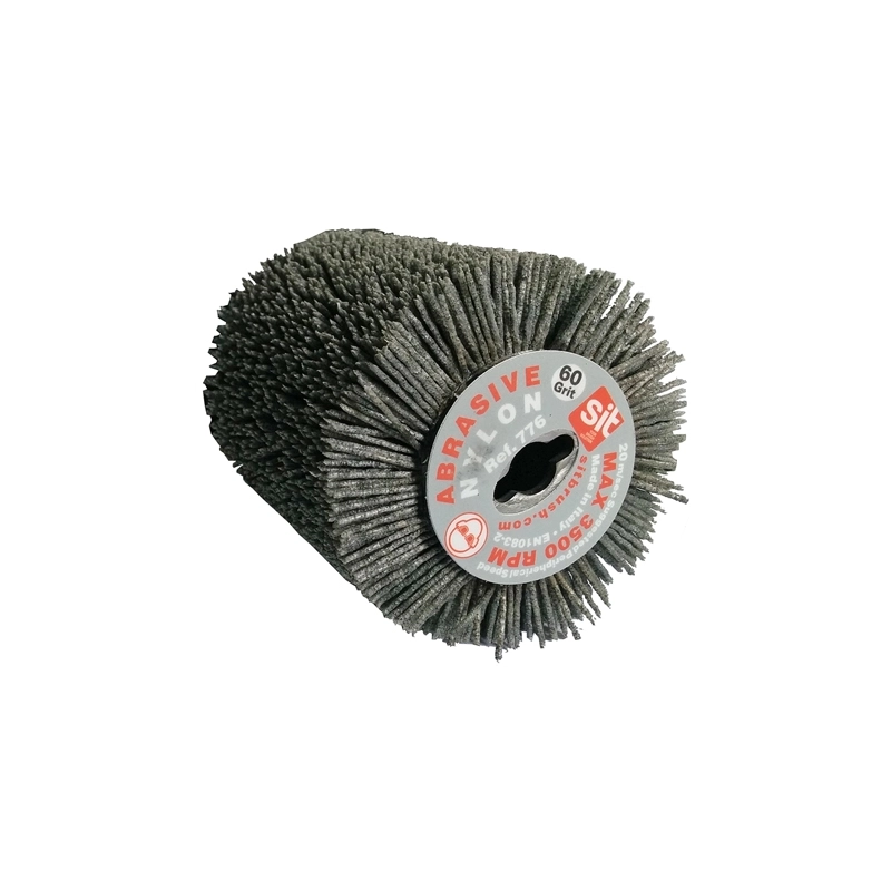 Rulli in nylon abrasivo Tynex spiralate per spazzolatrici. (Esiste anche il modello punzonato piu' economico, ma con risultati di lavorazione e di durata molto inferiore). Per ferro, pietra, marmo e legno per satinare, levigare. Dimensioni 100x115 mm. Modello = grana/art.fornitore