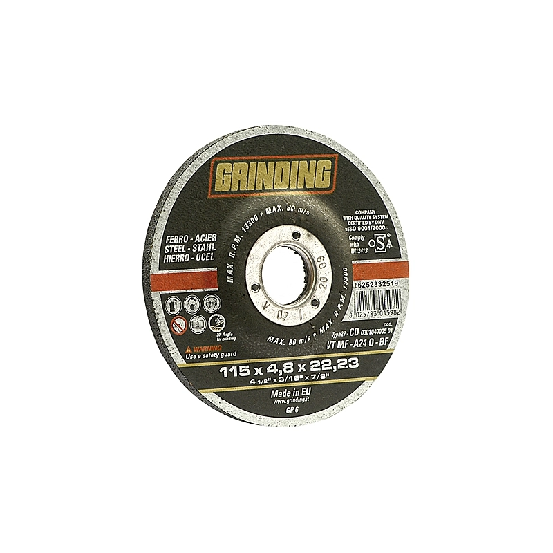 A centro depresso per la sbavatura su macchine portatili, smerigliature in genere di carpenteria, spianatura di superfici, asportazione di ruggine. Modello = diametro mm x spessore mm x foro mm