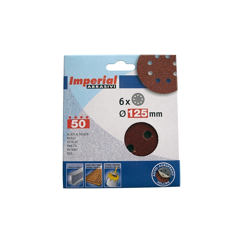 Dischi velcrati forati. In confezione blister da 6 pezzi. Modello = diametro mm/grana/numero fori