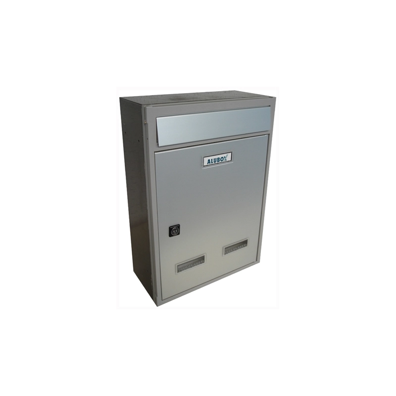 Sportello e struttura in alluminio anodizzato argento, impostazione frontale. Cornice esterna in plastica colore argento. Dimensioni mm 270x390x130