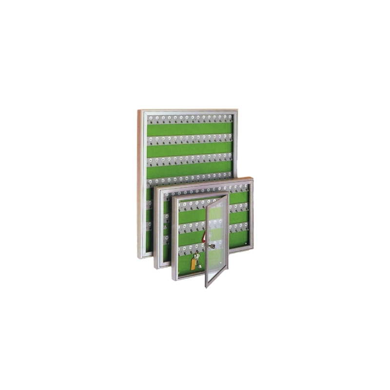 In alluminio anodizzato, con porta in plexiglas trasparente. Serratura a cilindro con due chiavi. Ganci numerati. Profondita' 4 cm. Modello = numero posti/dimensioni cm (LxH)/finitura cornice/colore fondo
