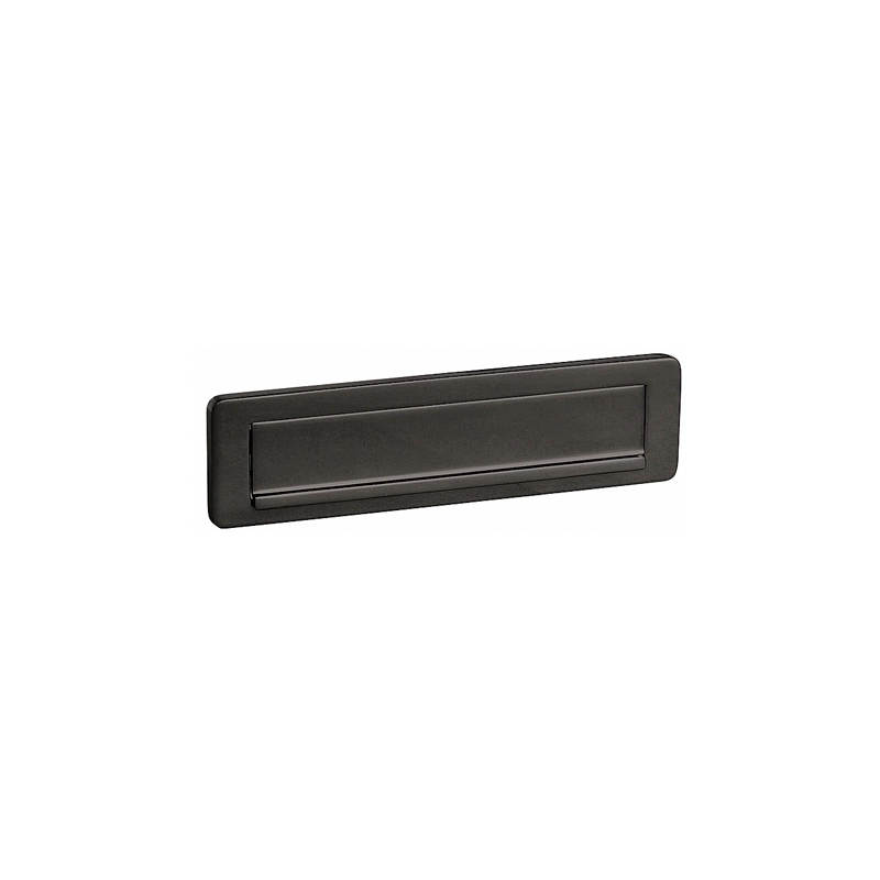 Dimensioni mm 275x75x8. Apertura buca mm 230x43. Materiale: ottone. Modello = finitura