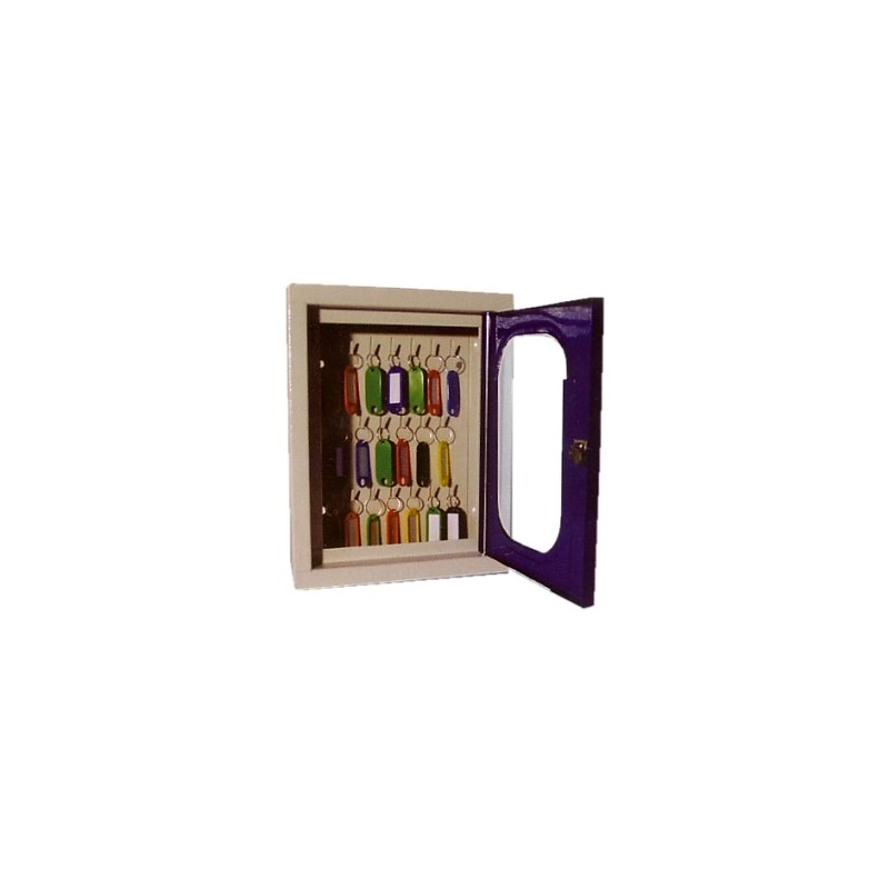 In lamiera verniciata. Porta con finestra trasparente. 40 ganci. Dimensioni mm.300x400x80.