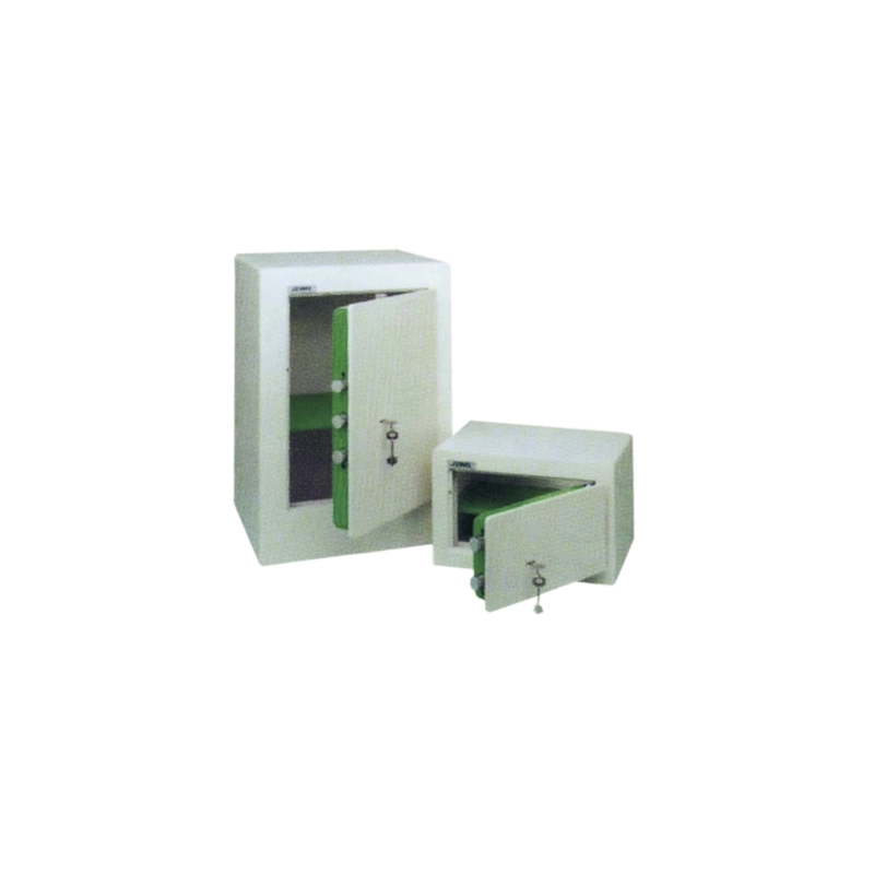 Porta in acciaio da mm.8, apertura a tutta luce. Serratura con chiavi bicifrate a 8 leve, due mandate. Dimensioni cm.60,8x40,8x38
