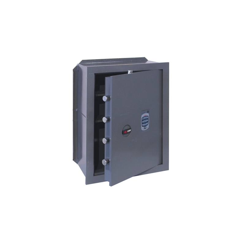 Cassaforte elettronica con tastiera elettroluminescente. Frontale in acciaio spessore 10 mm. Catenacci girevoli in acciaio nichelato da 22 mm. Speciale verniciatura a forno ad alta resistenza contro la corrosione. Anta smontabile. Dotazione: cavo per alimentazione esterna, ripiano e istruzioni. Alimentazione con pile stilo alcaline da 1,5V. Modello = dimensioni LxHxP mm