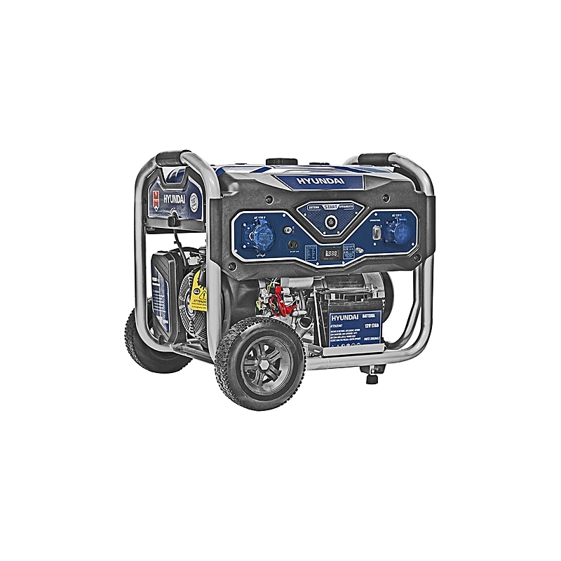 Generatore 4 tempi monofase. Potenza massima in uscita 6 Kw. 230V. Tecnologia AVR. Avviamento elettrico con tasto. Carburante: benzina. Capacita' serbatoio: 25 l. Rumorosita' 76 dB. Dimensioni 600x860x620 mm. Peso 89 kg.