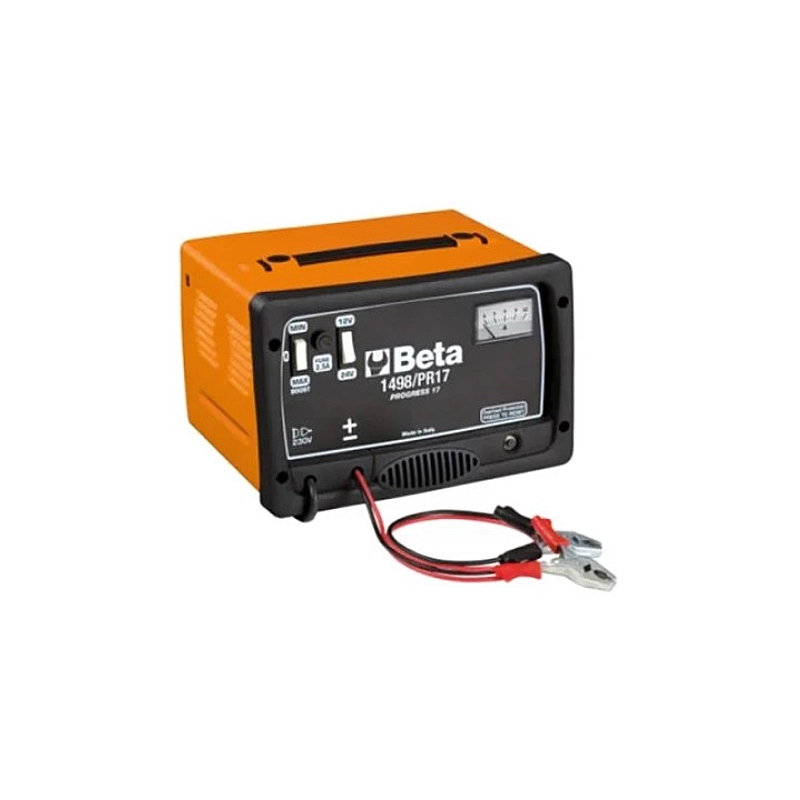 Caricabatterie semi-professionale con selettore di tensione, regolatore di corrente, amperometro. Potenza assorbita 300 W. Tensione di carica 12-24 V. Corrente di carica 8,5 Ah. Peso kg 4,1.