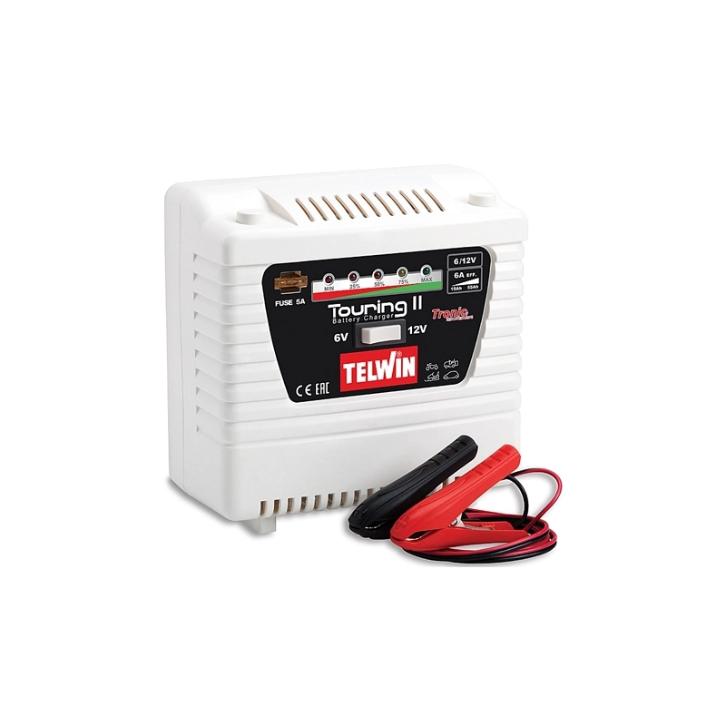 Caricabatterie con controllo elettronico delle fasi di carica, interruzione e ripristino automatico (TRONIC). Carica batterie tipo WET, GEL, Pb-Ca, AGM, MF, EFB con tensione 6/12 V. Segnala lo stato di carica della batteria tramite LED. Dotato di protezione contro sovraccarichi, inversione di polarita' e riconoscimento della tensione della batteria. Potenza assorbita 60 W. Dimensioni 10x19x19 cm.