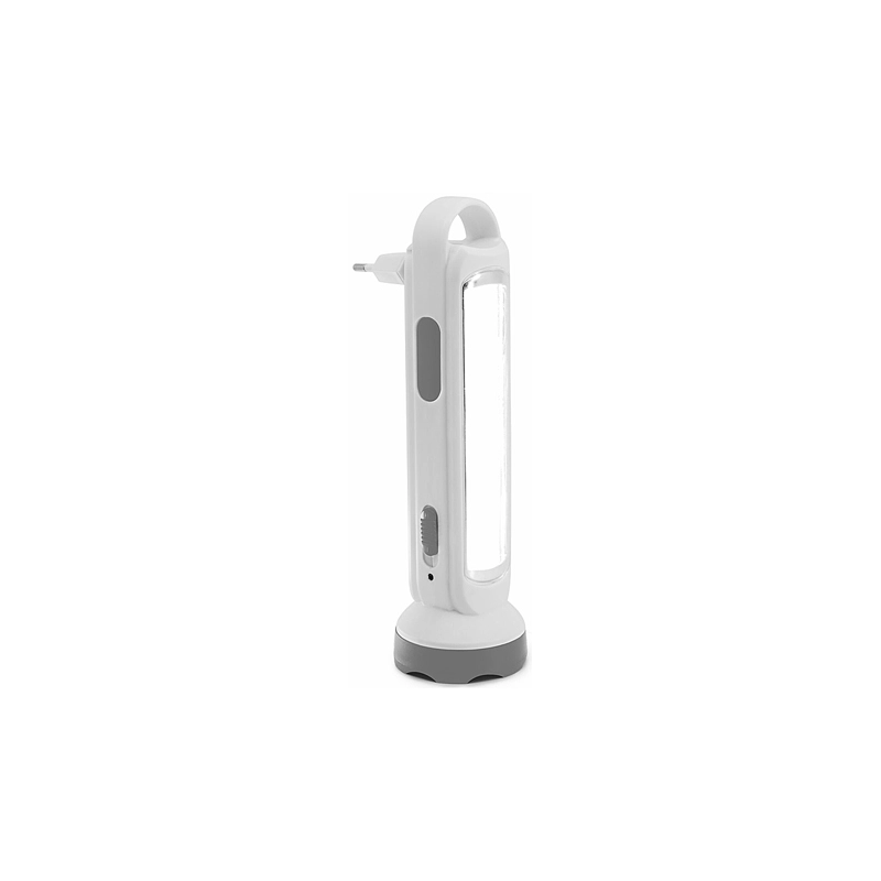 Torcia multifunzione, 1 Torcia LED frontale (150 lumen), 18 Led diffusa laterale (350 lumen). Alimentazione 220-240V 50/60Hz. Batteria Lithium ricaricabile inclusa: 3,7V, 1500 mAh. Autonomia: 18 LED, 3 ore - Torcia, 6 ore. Accensione automatica in mancanza di tensione.
