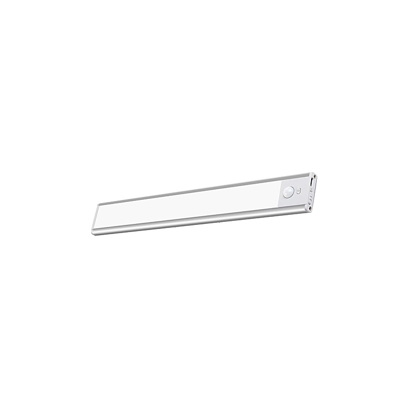 Luce Led da armadio o sottopensile con rilevatore di movimento. 2 modalita' di funzionamento: sempre accesa o automatica con accensione tramite rilevatore di movimento. Ricaricabile tramite cavo USB in dotazione. 3 colori di luce: calda, naturale e fredda. Modello = lunghezza cm/lumen