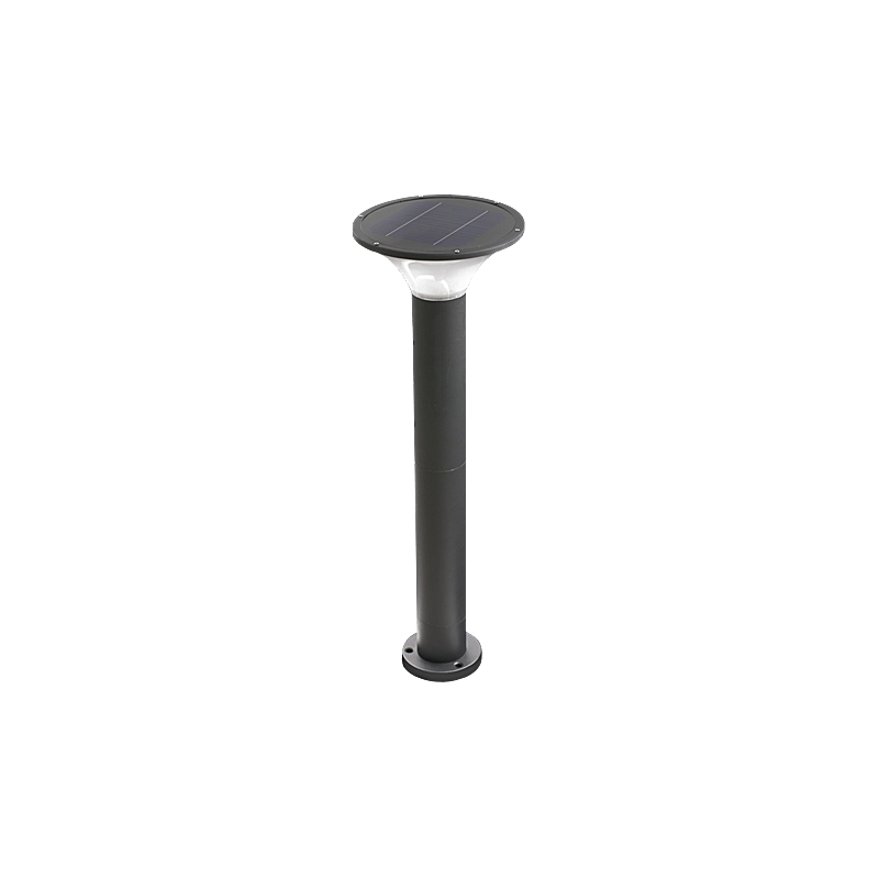 Lampione solare in alluminio con diffusore in policarbonato. Accensione automatica al tramonto. 2W. 160 lumen. IP65. Colore luce 3000-4000-6000 K (regolabile tramite pulsante). Durata 20.000 ore. Diametro 205 mm, altezza 57 cm. In dotazione collare di fissaggio con viti. Disponibili come accessori da ordinare a parte prolunga da 24,5 cm e picchetto da mettere nel terreno da 24,5 cm.