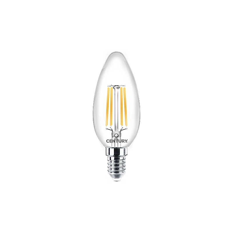 Lampade a LED a filamento, alternativa alle tradizionali lampade a incandescenza. Durata media fino a 20.000 ore con un riparmio di energia fino al 90%. Ampiezza del fascio luminoso: 330 gradi. Attacco E14. 220-240 V, 50-60 Hz. Diametro 35 mm. Luce calda 2700 K. Modello = potenza/lumen
