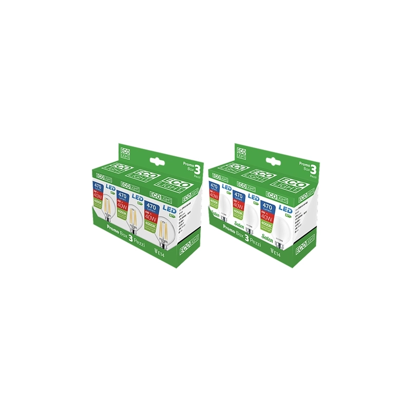 Box di 3 lampadine Led 4000 K. Attacco E14. 4W. 470 lumen. 25000 ore. Modello = tipo di diffusore