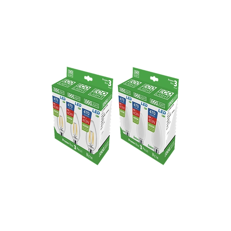 Box di 3 lampadine 4000 K. Attacco E14. 4W. 470 lumen. 25000 ore. Modello = tipo di diffusore