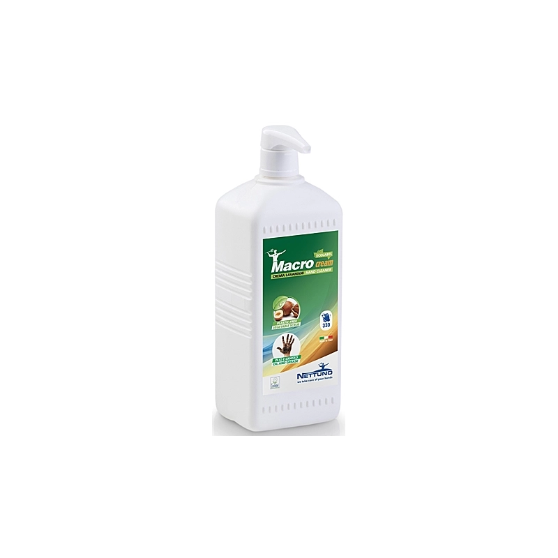 Lavamani fluido cremoso dalle proprieta' detergenti ed emollienti uniche. Esente da solventi e altri materiali aggressivi per la cute. MacroCream contiene inoltre microsfere finissime di origine vegetale che conferiscono maggior forza alla sua azione pulente. Certificato Ecolabel. Conf. da ml 1000