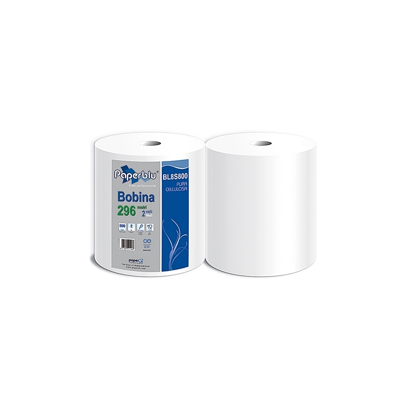 Bobine industriali in pura cellulosa 2 veli, liscia. Dati rotolo singolo 800 strappi da cm 25x37, lunghezza mt 296. Certificata per uso alimentare. Peso per velo 20 gr/m2. Peso kg 6 alla coppia.