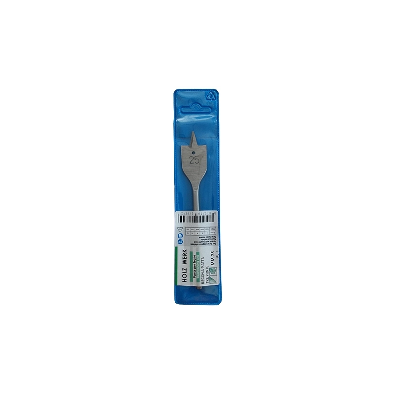 Con punta centrale e 2 tagliente laterali. Per legno, compensato e cartongesso. Modello = larghezza taglienti mm.
