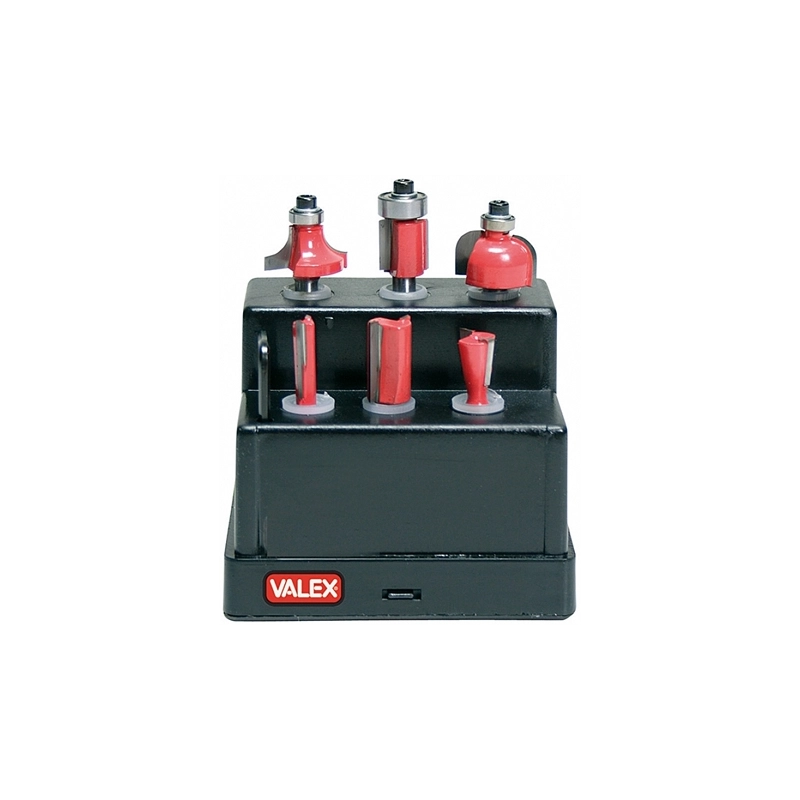 Set 6 pz per fresatrici: 2 per profili con cuscinetto a sfera di avvio, 2 per scanalature, 1 per incastri a coda di rondine e 1 a filo con cuscinetto a sfera di avvio. Diametro codolo mm 6