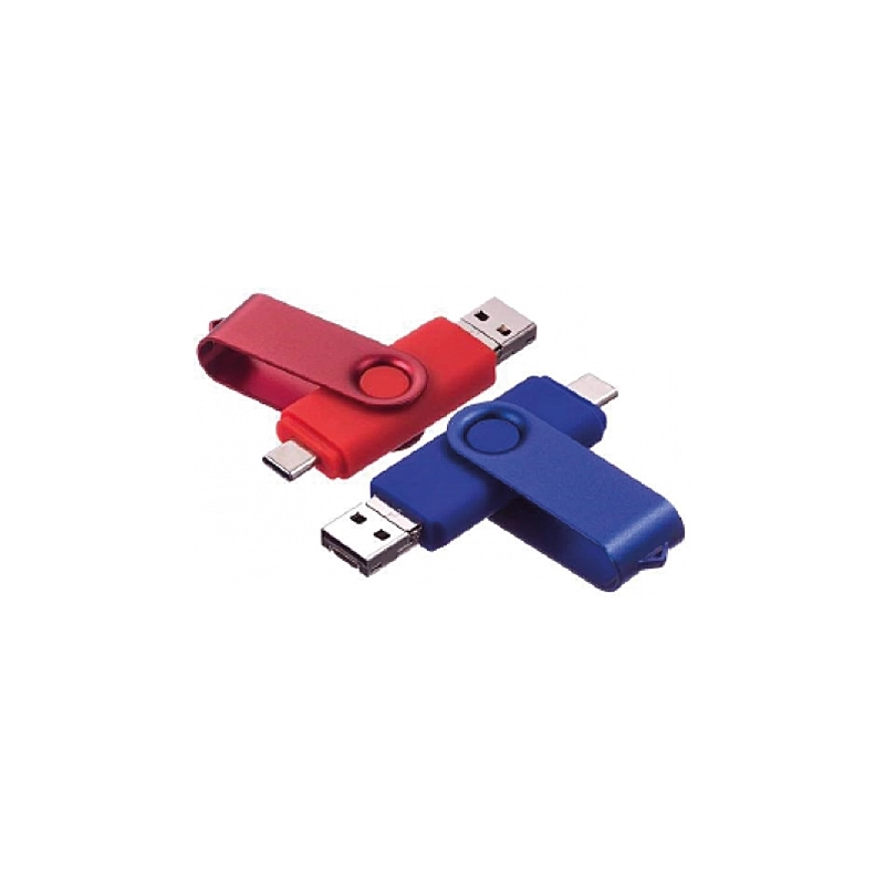 Chaivetta USB con memoria da 16 GB. 3 attacchi: USB, type-C e micro USB. Colori assortiti.