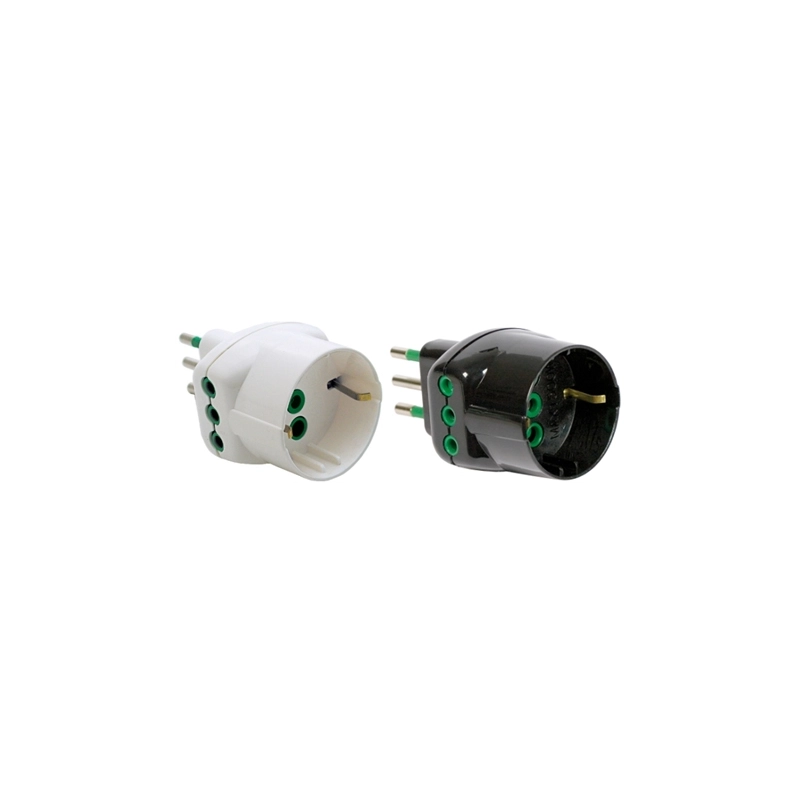 Adattatore spina 2P+T 10A - 2 Prese 2P+T 10A + 1 Schuko. Modello = art. Fanton/confezionamento/colore