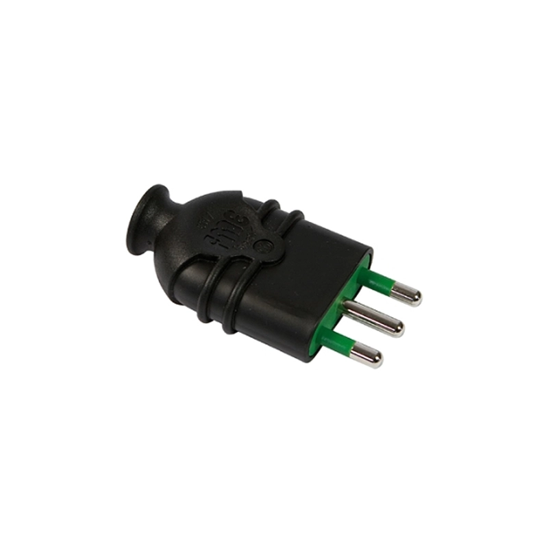 Spina italiana 2P+T. Modello HI-PRO con corpo in tecnopolimero ad alta resistenza al calore ed agli urti. Colore nero. Modello = A
