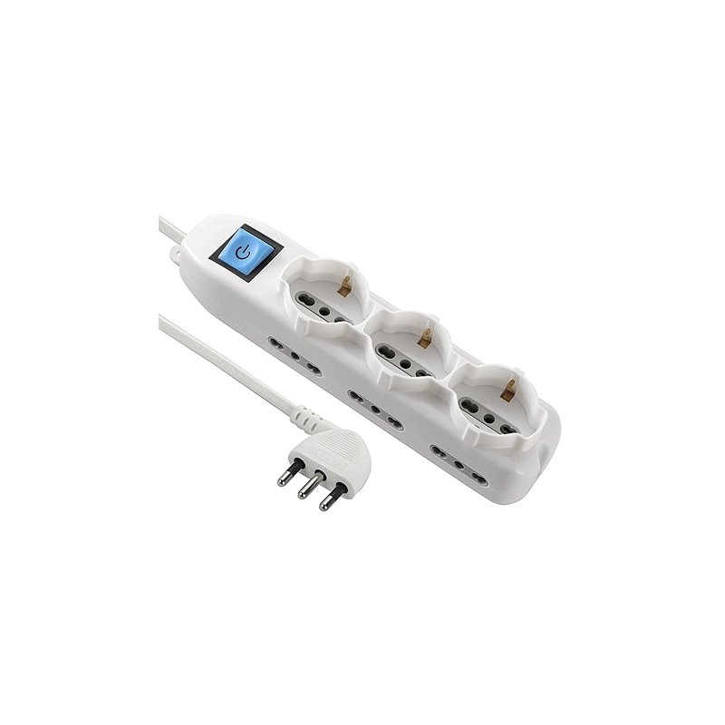 Lunghezza cavo 1,5 mt. 3 prese 2P + T 16A bipasso-schuko e 6 prese 2P + T 16A bipasso. Spina 2P + T 16A. Colore bianco. In blister.