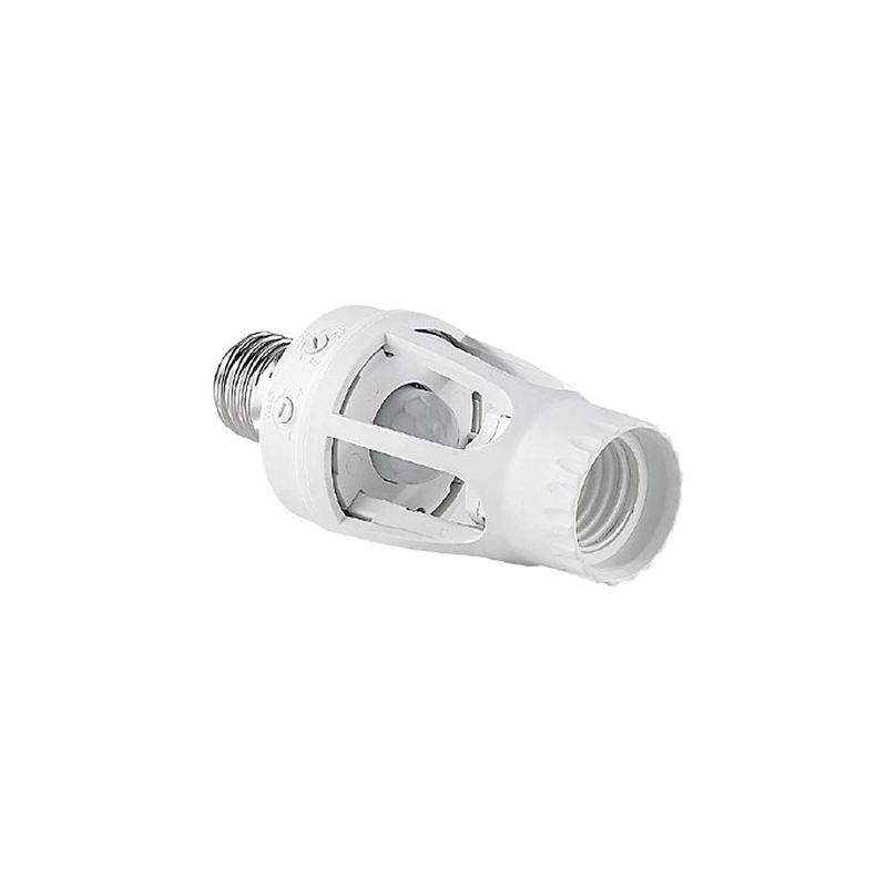 Portalampada con sensore crepuscolare e movimento. Attacco E27. Colore bianco. In blister.
