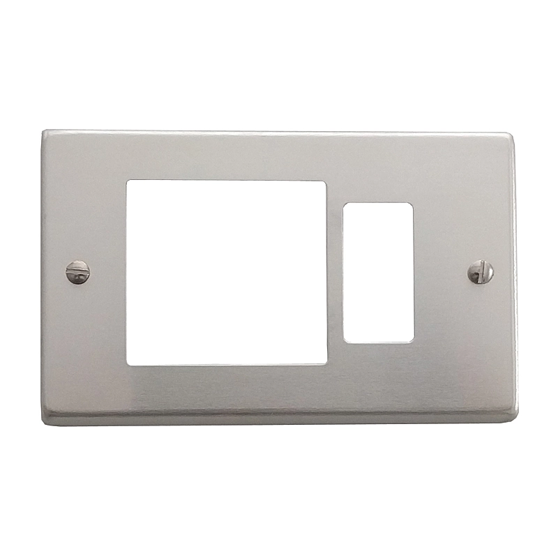 Placca in alluminio con 1 posto + 1 posto per una presa schuko. In blister.