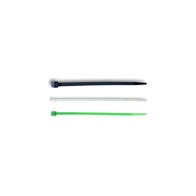 Fascette per cablaggi. Realizzate in poliammide 66. Resistenza alla temperatura da -40 a +85 gradi. Autoestinguenti classe V2. Certificazione UL e TUV. Conf. da 100 pz. Made in Italy. Modello = Dimensioni mm/diametro di fissaggio mm/colore (T = Trasparente - N = Nero - V = Verde)