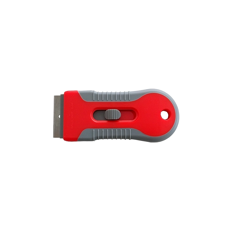 Corpo in acciaio gommato. Lama intercambiabile 40x20 mm. Ideale per la pulizia dei piani cottura in vetroceramica. Disponibili da comprare a parte confezione di 5 lame ricambio.