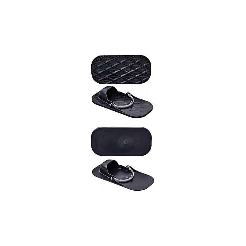 Ciabatte in materiale plastico antiurto per camminare sulle piastrelle durante la posa. Fermapunta incorporato per scarpe antinfortunistiche. FIssaggio al piede con elastico. Perfetta planarita'. Superficie di contatto a pavimento 20x39 cm. Disponibile come ricambio l'elastico. Made in Italy. Modello = lisce o rigate