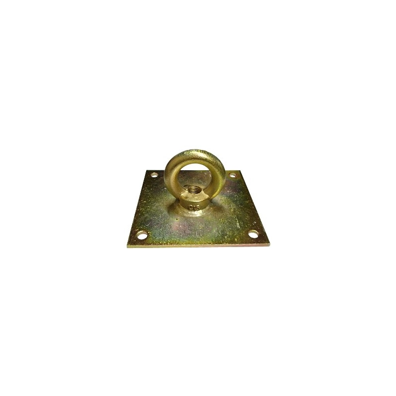 In acciaio tropicalizzato. Dimensione piastra mm 150x150x4, diametro anello mm 40, diametro filo mm 16