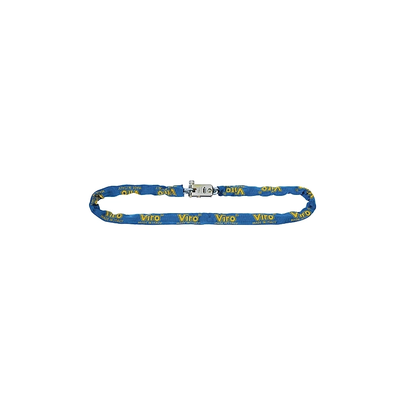 Lucchetto corazzato in acciaio temprato e cementato. Catena maglia quadra in acciaio speciale. Modello = lunghezza cm/maglia catena da mm