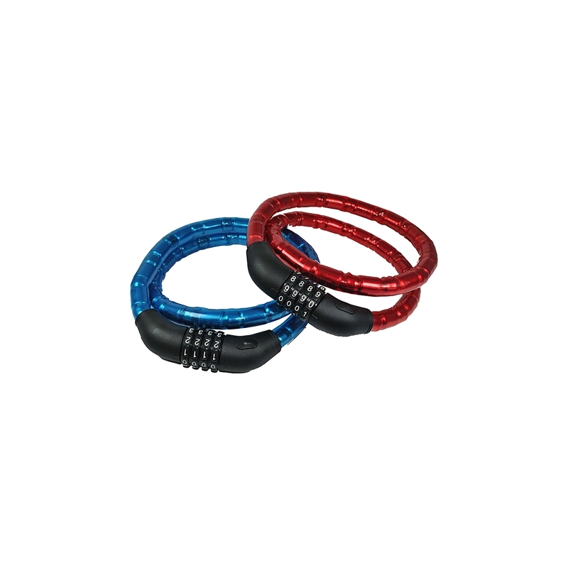 Cavo di sicurezza in acciaio ricoperto in PVC. Combinazione a 4 numeri. Cavo blindato diametro mm 18. Lunghezza cm 100.
