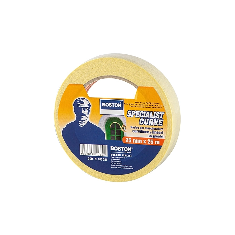 Nastro professionale in carta crespata. Con adesivo in gomme sintetiche e resine. Ideale per curve. Altamente elastico e conformabile. Spessore 280 my. Larghezza 24 mm. Lunghezza 25 mt