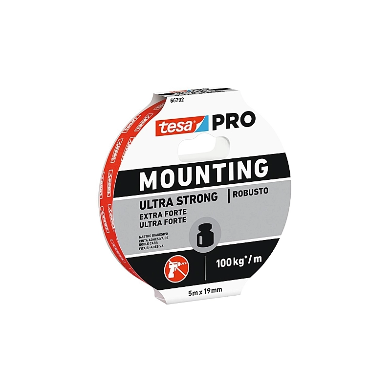 Nastro ultraresistente adatto per il fissaggio di oggetti. Questo nastro e' in grado di sostenere fino a 10 kg con soli 10 cm. Per interni ed esterni. Adatto per piastrelle, legno finito e la maggior parte delle plastiche. Larghezza 19 mm. Modello = lunghezza mt