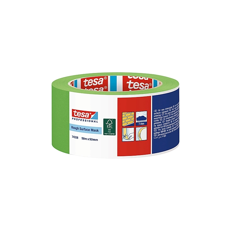 Nastro carta colore verde progettato appositamente per la mascheratura, perfetto per uso esterno. Si adatta facilmente alle superfici ruvide o irregolari. Elevata resistenza agli UV. Facile da rimuovere. Ottima resistenza alla temperatura. Spessore 145 micron. Lunghezza 50 mt. Modello = larghezza mm