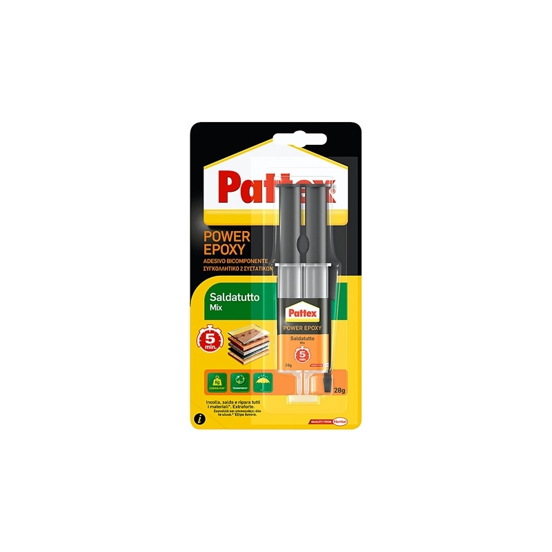 Adesivo epossidico bicomponente, adatto per vetro, ceramica, metallo, legno. Siringa da gr 28