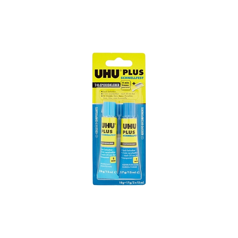 Adesivo bicomponente a base di resina epossidica senza solventi che coniuga la rapidita' con la resistenza dell'incollaggio nel tempo (1300 N/cm2). Mediamente 3-5 g di adesivo impiegano circa 5 minuti, 20 g circa 3 minuti. Permette di incollare con i massimi risultati metalli, legno, plastiche dure, ceramica e PVC rigido. Risulta piu' debole su PE, PP e PVC morbido.
